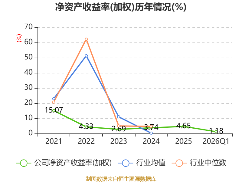 盈利能力方面, 2026年一季度公司加权平均净资产收益率为1.18%,同比上升0.4个百分点。公司2026年第一季度投入资本回报率为0.84%,较上年同期下降0.09个百分点。