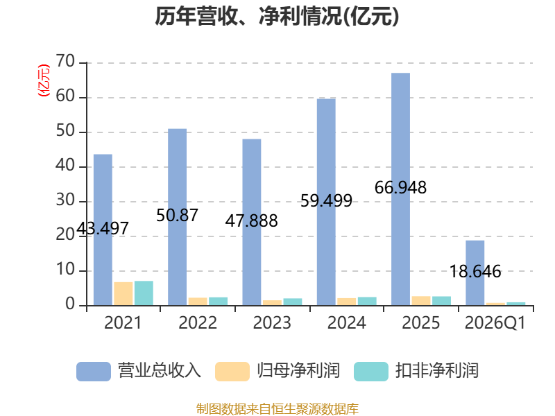 负债重大变化方面,截至2026年一季度末,公司应付票据及应付账款较上年末减少35.87%,占公司总资产比重下降5.56个百分点;短期借款较上年末增加26.99%,占公司总资产比重上升5.2个百分点;长期借款较上年末减少59.36%,占公司总资产比重下降2.2个百分点;一年内到期的非流动负债较上年末增加447.73%,占公司总资产比重上升2.03个百分点。