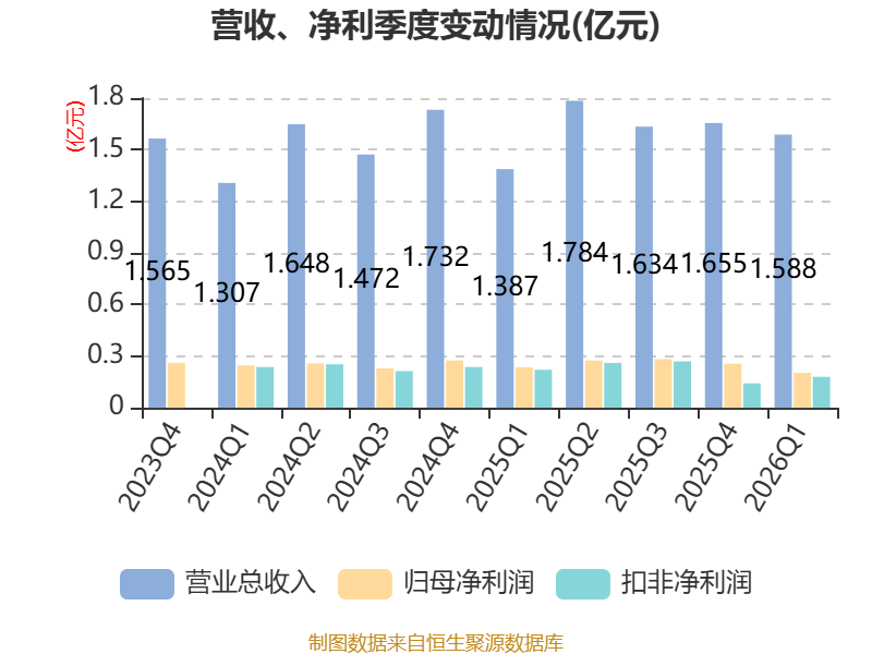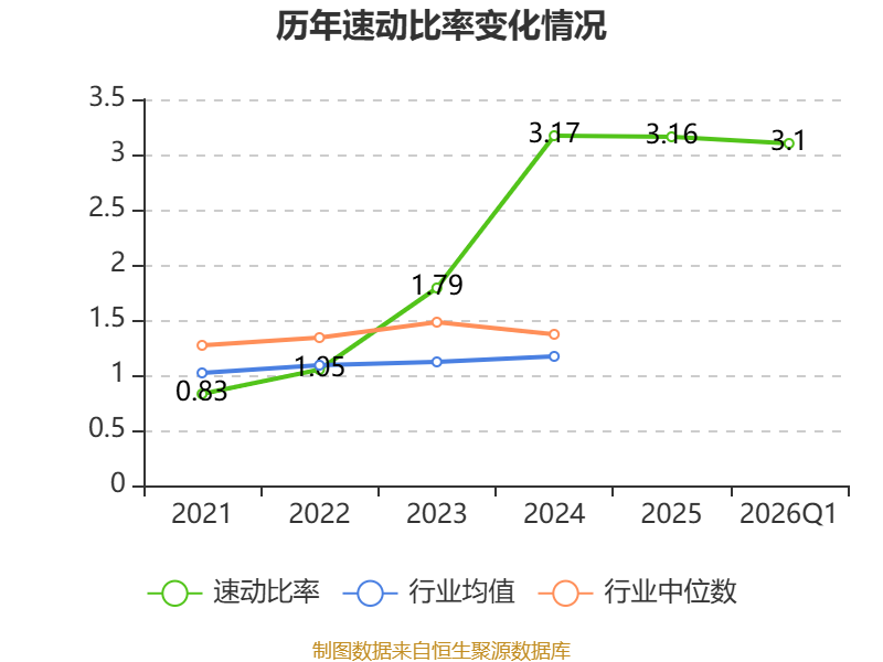 2026年第一季度,公司流动比率为3.82,速动比率为3.1。