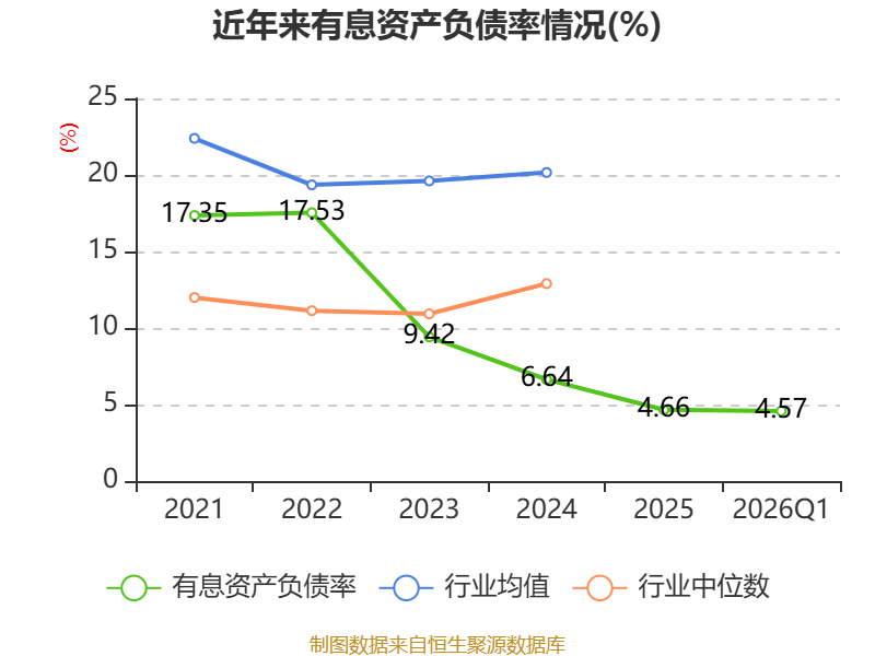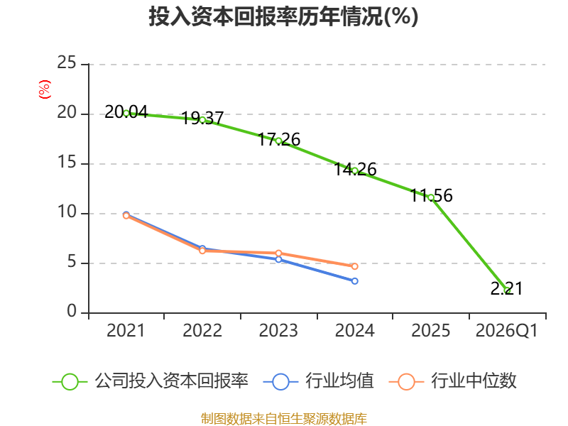 盈利能力方面, 2026年一季度公司加权平均净资产收益率为2.29%,同比下降0.5个百分点。公司2026年第一季度投入资本回报率为2.21%,较上年同期下降0.36个百分点。