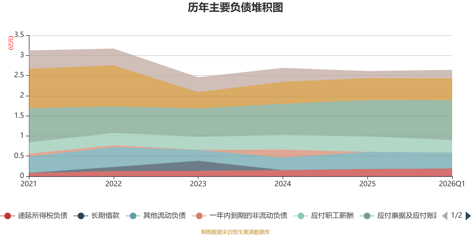 负债重大变化方面,截至2026年一季度末,公司应付职工薪酬较上年末减少19.87%,占公司总资产比重下降0.72个百分点;应付票据及应付账款较上年末增加10.13%,占公司总资产比重上升0.61个百分点;其他流动负债较上年末减少7.33%,占公司总资产比重下降0.34个百分点;应交税费较上年末增加268.09%,占公司总资产比重上升0.25个百分点。