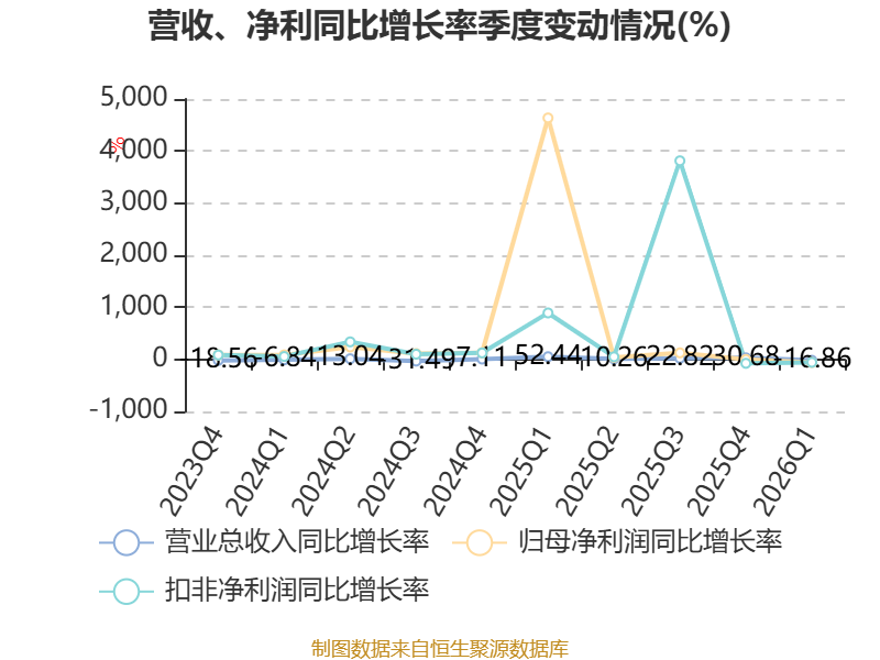 资产重大变化方面,截至2026年一季度末,公司应收票据及应收账款较上年末减少61.46%,占公司总资产比重下降5.02个百分点;货币资金较上年末增加13.67%,占公司总资产比重上升4.53个百分点;交易性金融资产合计较上年末减少17.62%,占公司总资产比重下降3.64个百分点;固定资产较上年末增加4.02%,占公司总资产比重上升1.54个百分点。
