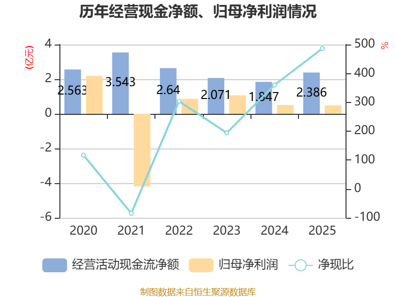 截至2025年,公司经营活动现金流净额为2.39亿元,同比增长29.14%;筹资活动现金流净额-5161.18万元,同比增加5598.73万元;投资活动现金流净额-2.13亿元,上年同期为-1.99亿元。