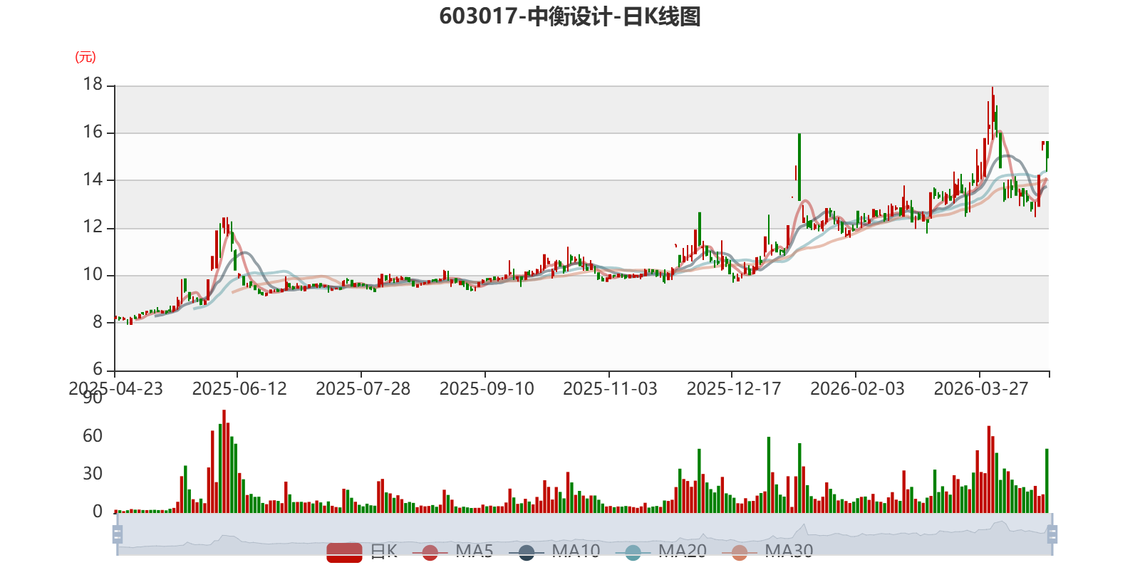 值得注意的是,中登公司数据显示,截至2026年4月17日,中衡设计13.58%股份处于质押状态。年报显示,第一大股东苏州赛普成长投资管理有限公司质押4410万股公司股份,占其全部持股的43.47%。