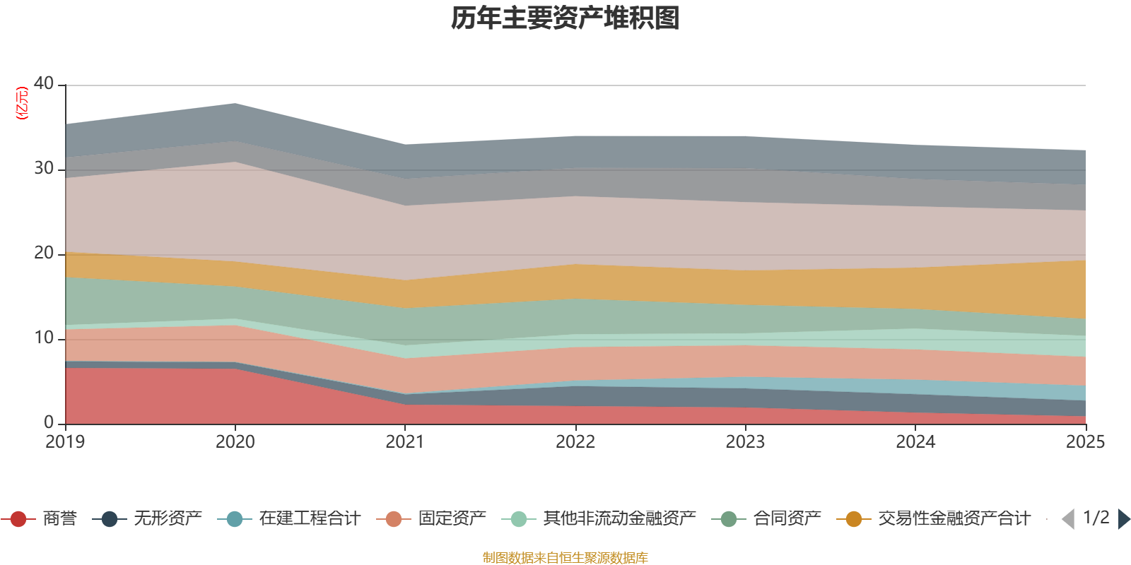 资产重大变化方面,截至2025年末,公司交易性金融资产合计较上年末增加42.21%,占公司总资产比重上升6.66个百分点;应收票据及应收账款较上年末减少18.79%,占公司总资产比重下降3.78个百分点;商誉较上年末减少32.31%,占公司总资产比重下降1.23个百分点;无形资产较上年末减少15.45%,占公司总资产比重下降0.92个百分点。
