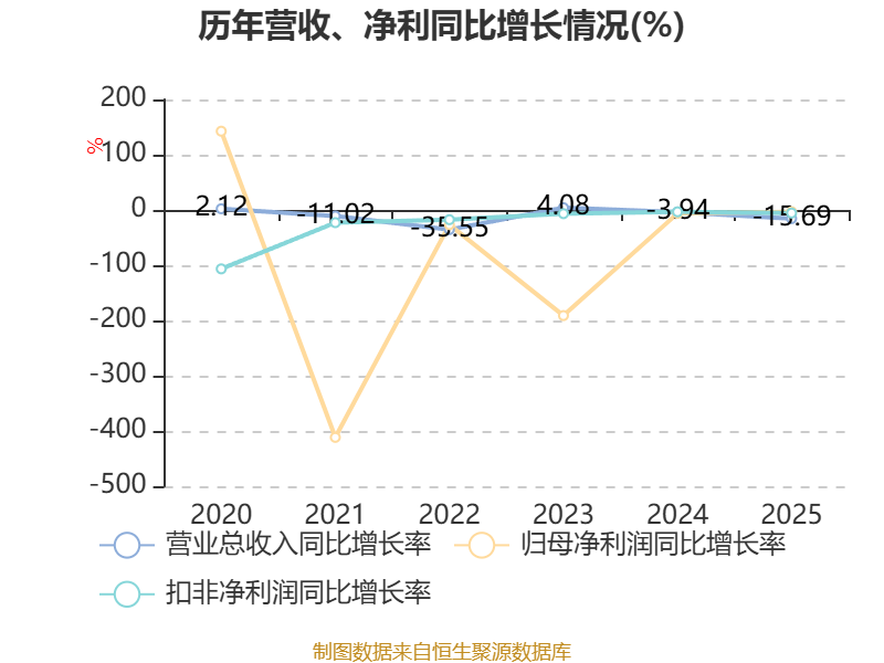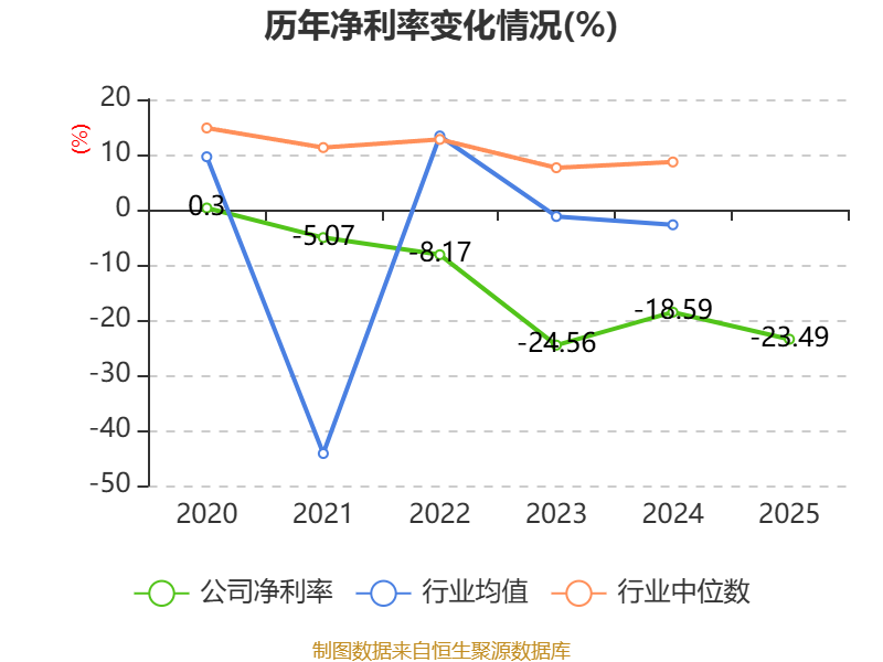 数据显示,2025年公司加权平均净资产收益率为-10.94%,较上年同期下降2.01个百分点。公司2025年投入资本回报率为-5.42%,较上年同期下降0.12个百分点。