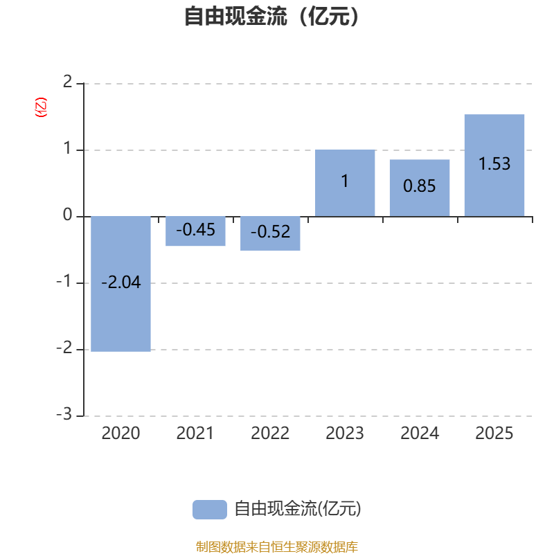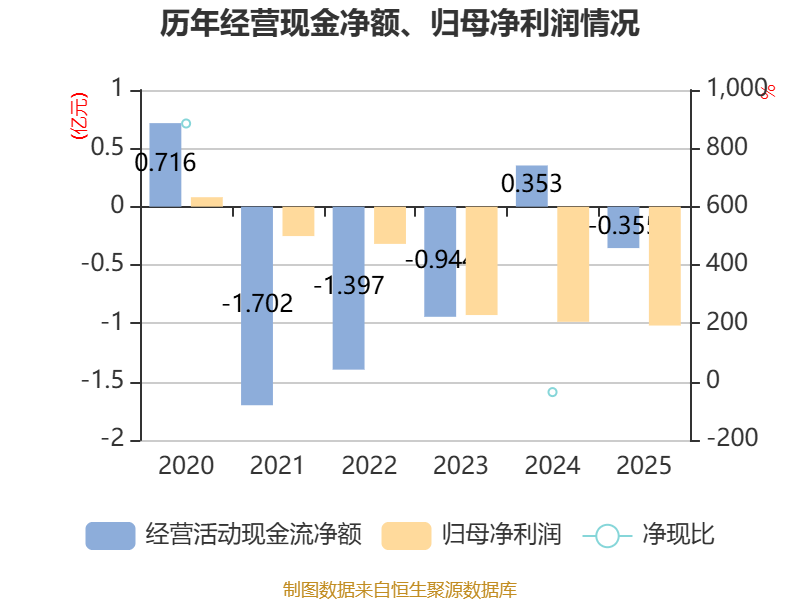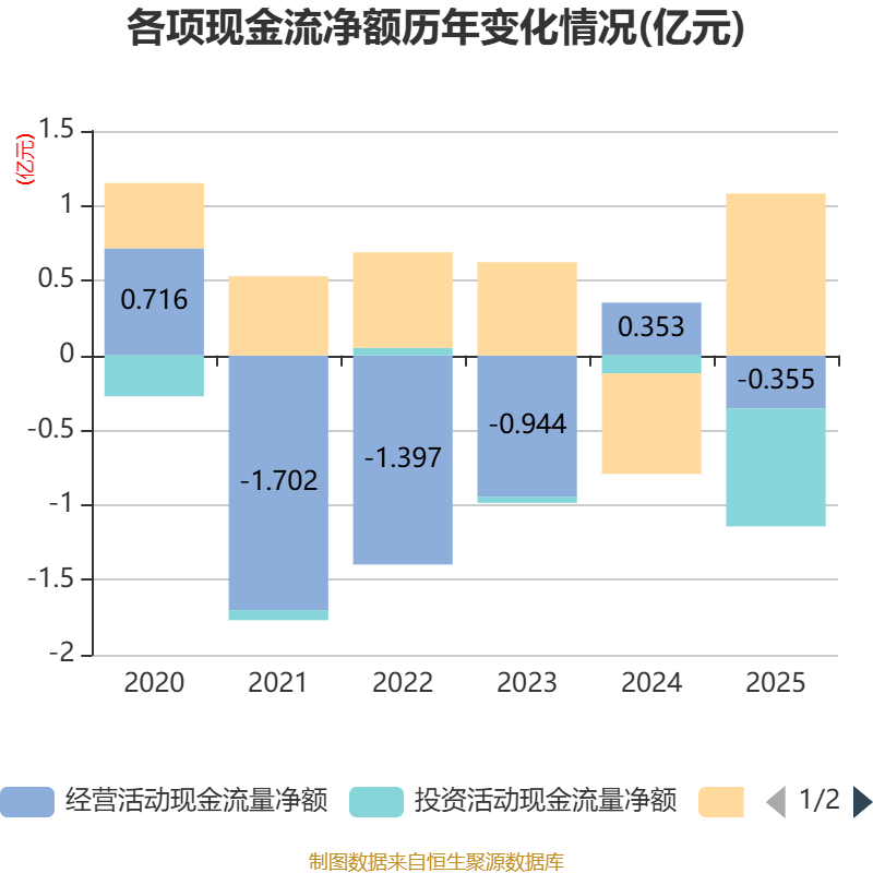 截至2025年,公司经营活动现金流净额为-3546.04万元,同比减少7079.79万元;筹资活动现金流净额1.08亿元,同比增加1.75亿元;投资活动现金流净额-7874.38万元,上年同期为-1204.84万元。