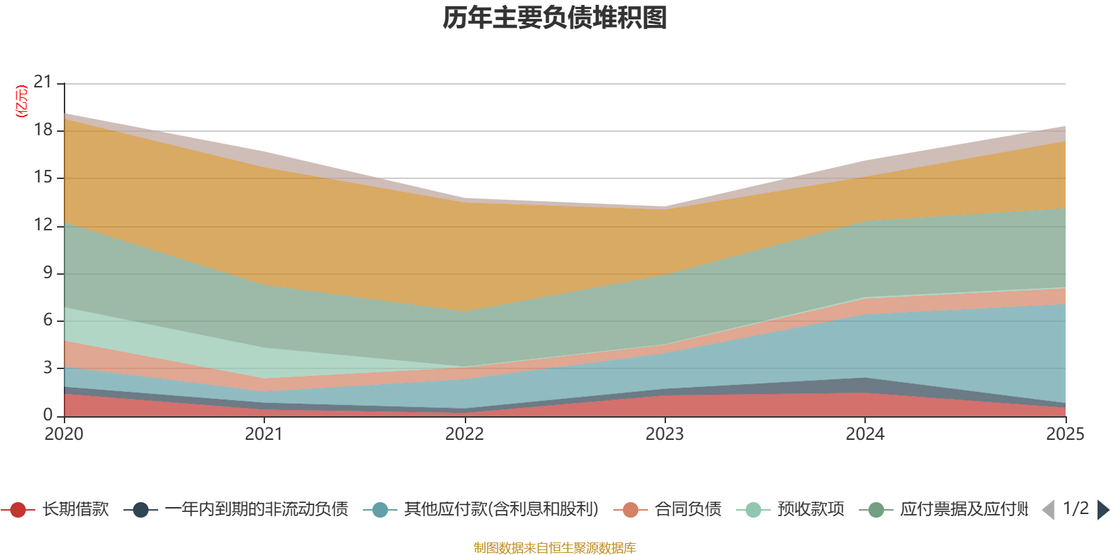 负债重大变化方面,截至2025年末,公司其他应付款(含利息和股利)较上年末增加56.35%,占公司总资产比重上升8.27个百分点;短期借款较上年末增加51.16%,占公司总资产比重上升5.28个百分点;长期借款较上年末减少63.68%,占公司总资产比重下降3.52个百分点;一年内到期的非流动负债较上年末减少69.14%,占公司总资产比重下降2.48个百分点。