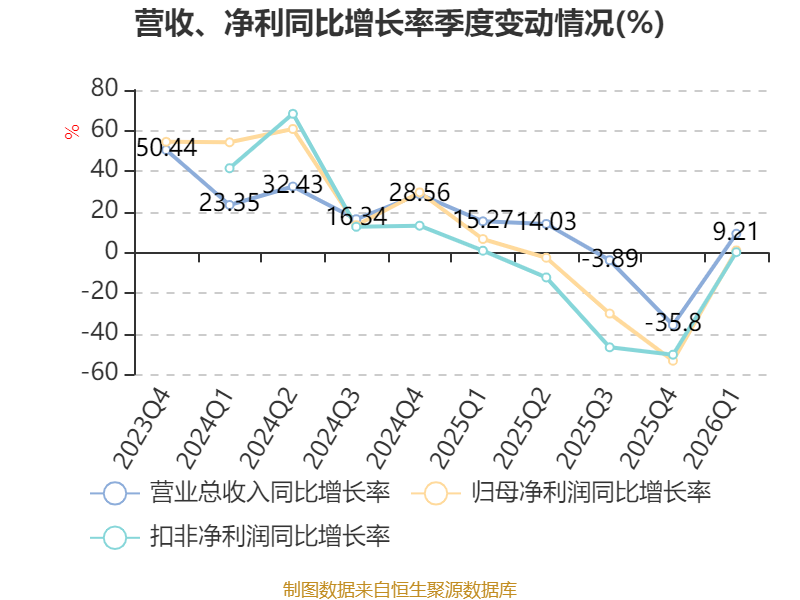 截至2026年一季度末,公司经营活动现金流净额为5816.64万元,同比增长672.3%;筹资活动现金流净额-547.88万元,同比减少544.9万元;投资活动现金流净额2.86亿元,上年同期为2856.53万元。