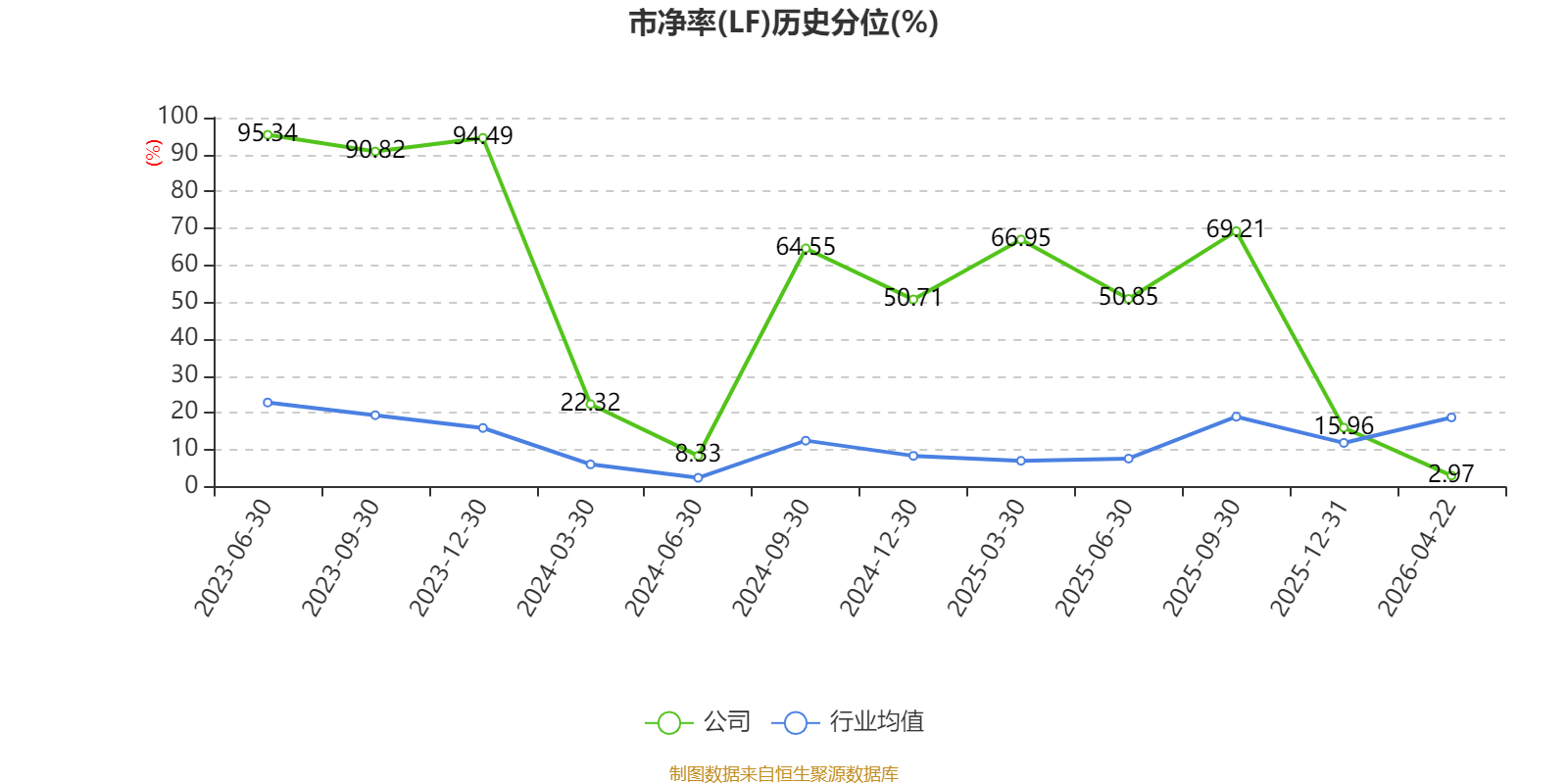 市盈率、市净率为负时,不显示当期分位数,会导致折线图中断。