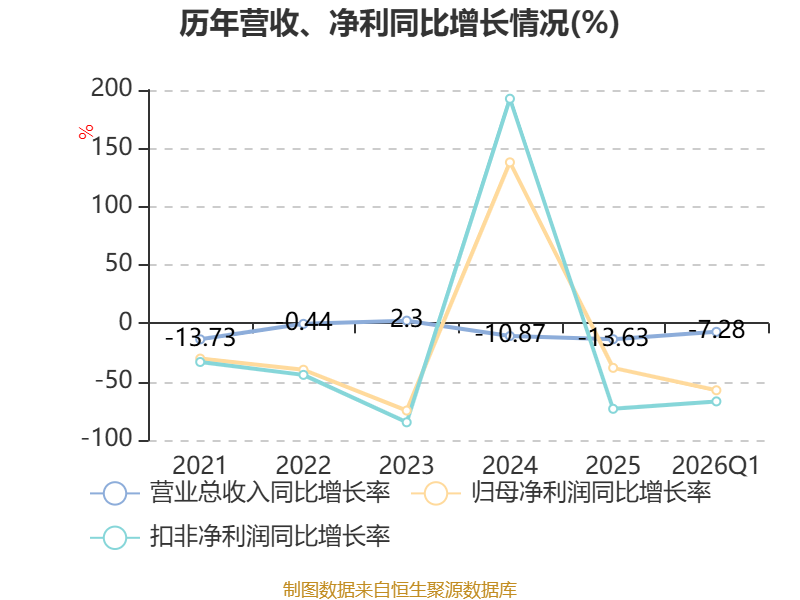 中证智能财讯再升科技(603601)4月23日披露2026年第一季度报告。公司实现营业总收入3.01亿元,同比下降7.28%;归母净利润1430.68万元,同比下降57.37%;扣非净利润921.32万元,同比下降66.91%;经营活动产生的现金流量净额为3457.92万元,同比下降51.63%;报告期内,再升科技基本每股收益为0.0121元,加权平均净资产收益率为0.58%。