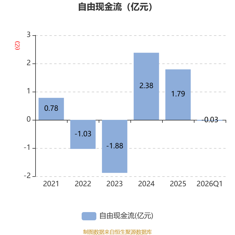 截至2026年一季度末,公司经营活动现金流净额为3457.92万元,同比下降51.63%;筹资活动现金流净额-85.73万元,同比减少142.96万元;投资活动现金流净额-1929.14万元,上年同期为-5153.83万元。