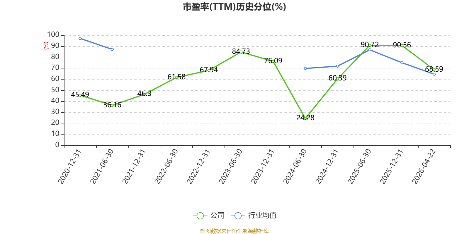 市盈率、市净率为负时,不显示当期分位数,会导致折线图中断。