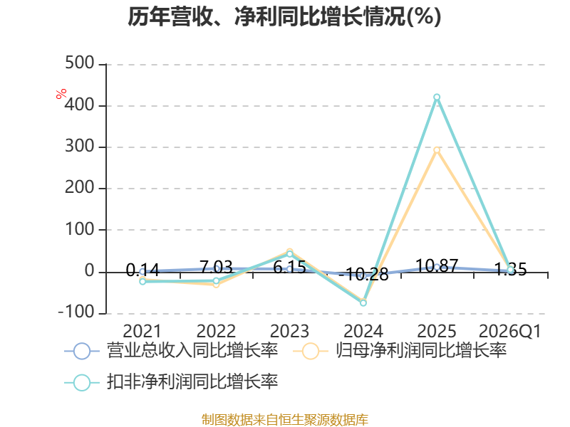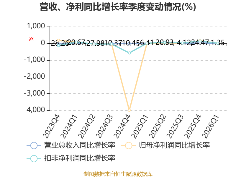资产重大变化方面,截至2026年一季度末,公司交易性金融资产合计较上年末减少14.05%,占公司总资产比重下降1.67个百分点;其他非流动资产较上年末增加47.56%,占公司总资产比重上升1.26个百分点;其他流动资产较上年末减少22.15%,占公司总资产比重下降0.77个百分点;货币资金较上年末增加7.45%,占公司总资产比重上升0.64个百分点。