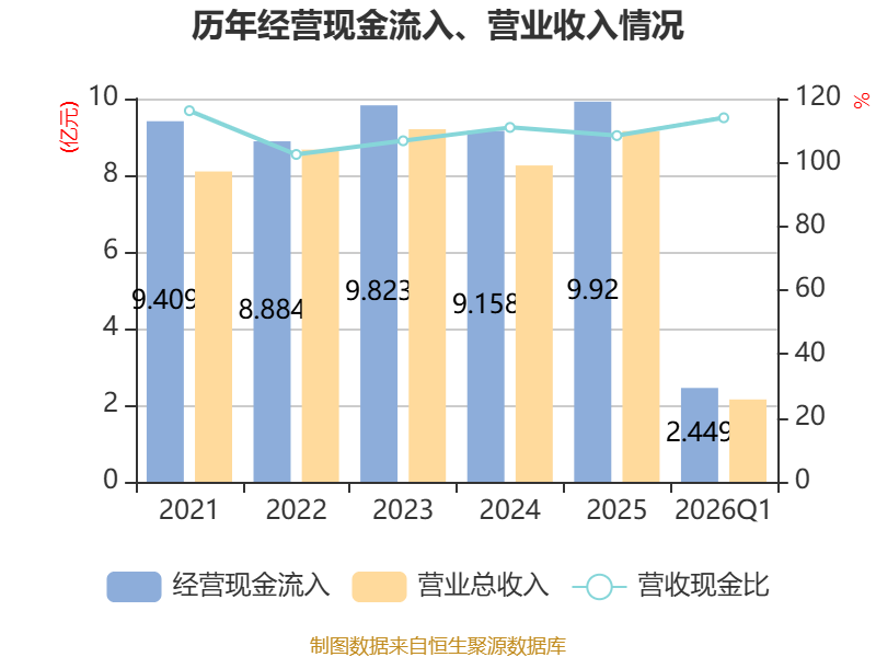 截至2026年一季度末,公司经营活动现金流净额为2059.7万元,同比增加5210.92万元;筹资活动现金流净额-3459.51万元,同比减少4961.74万元;投资活动现金流净额3887.22万元,上年同期为3864.26万元。