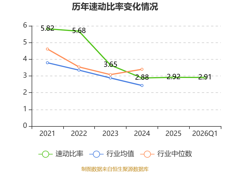 2026年第一季度,公司流动比率为3.05,速动比率为2.91。