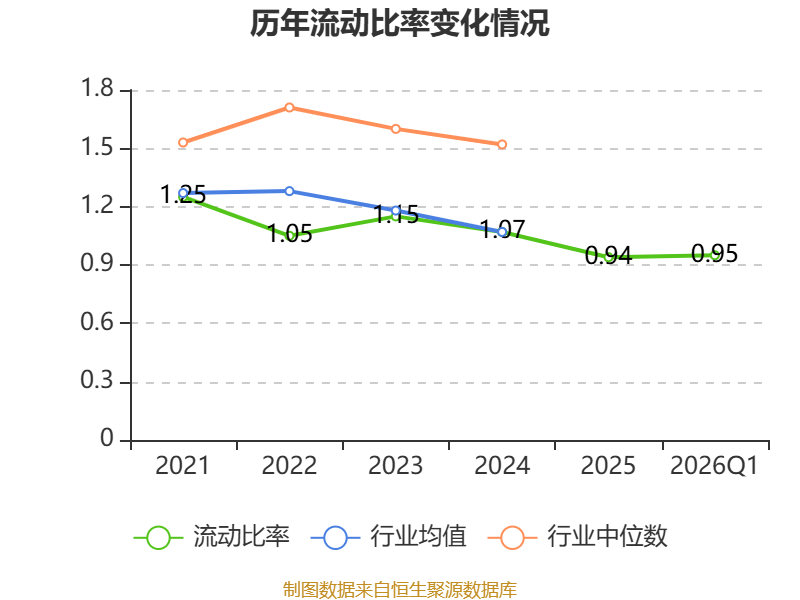2026年第一季度,公司流动比率为0.95,速动比率为0.88。