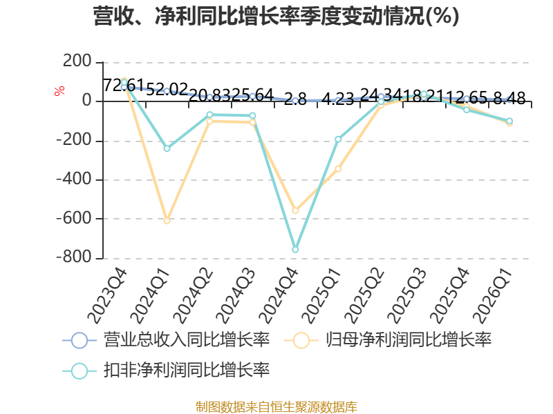 盈利能力方面, 2026年一季度公司加权平均净资产收益率为-4.74%,同比下降2.81个百分点。公司2026年第一季度投入资本回报率为-0.88%,较上年同期下降0.74个百分点。