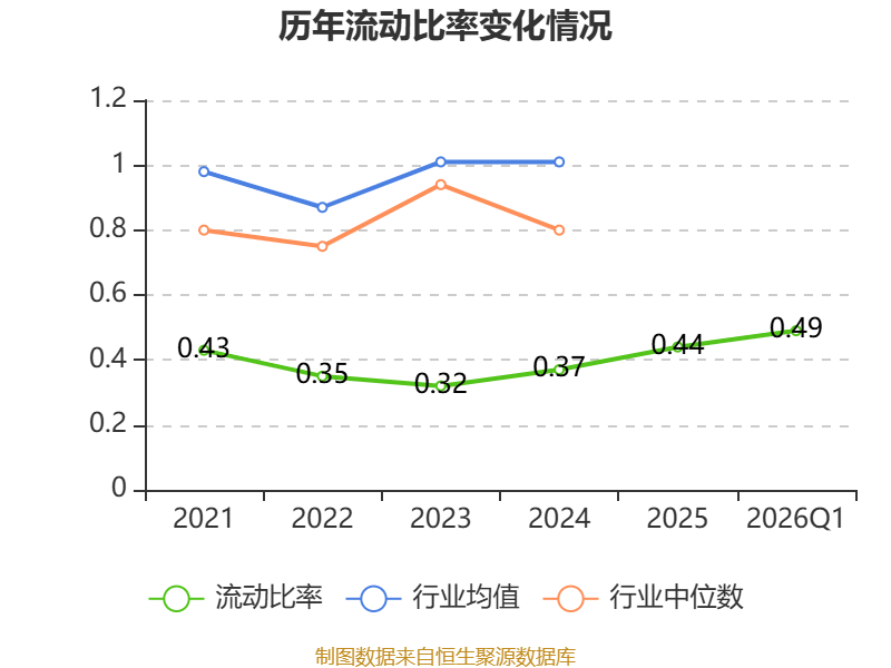 2026年第一季度,公司流动比率为0.49,速动比率为0.4。