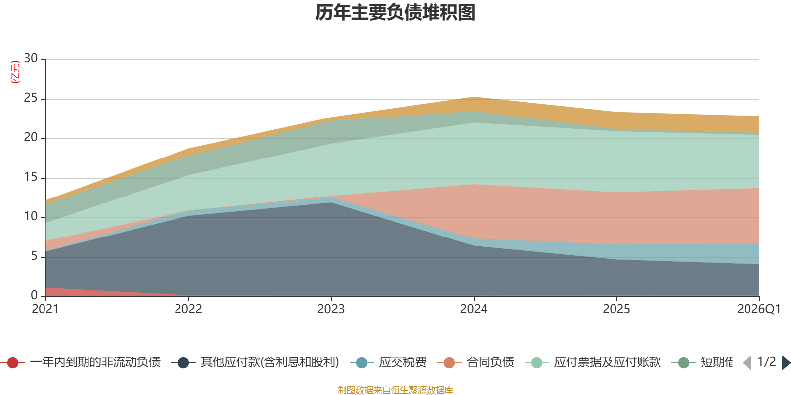 负债重大变化方面,截至2026年一季度末,公司应付票据及应付账款较上年末减少12.58%,占公司总资产比重下降1.42个百分点;应交税费较上年末增加35.56%,占公司总资产比重上升0.98个百分点;其他应付款(含利息和股利)较上年末减少12.46%,占公司总资产比重下降0.83个百分点;合同负债较上年末增加6.61%,占公司总资产比重上升0.63个百分点。
