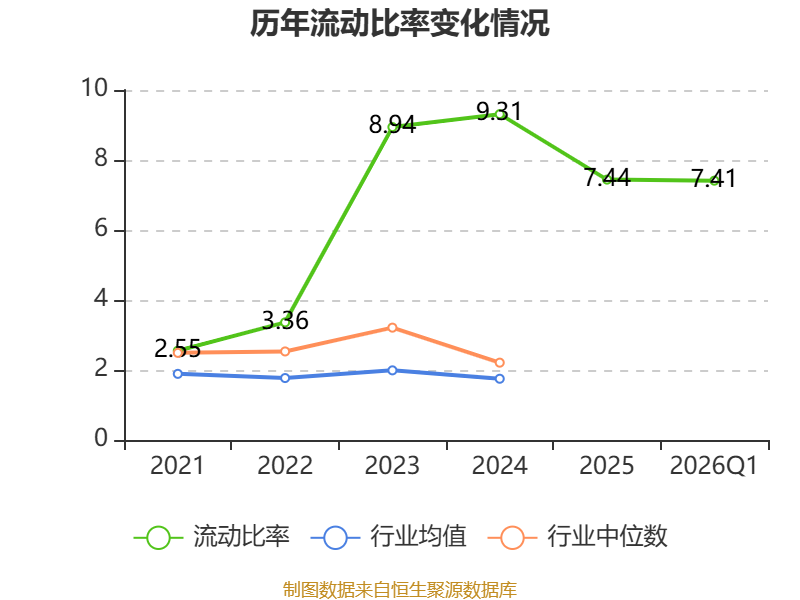 2026年第一季度,公司流动比率为7.41,速动比率为6.85。