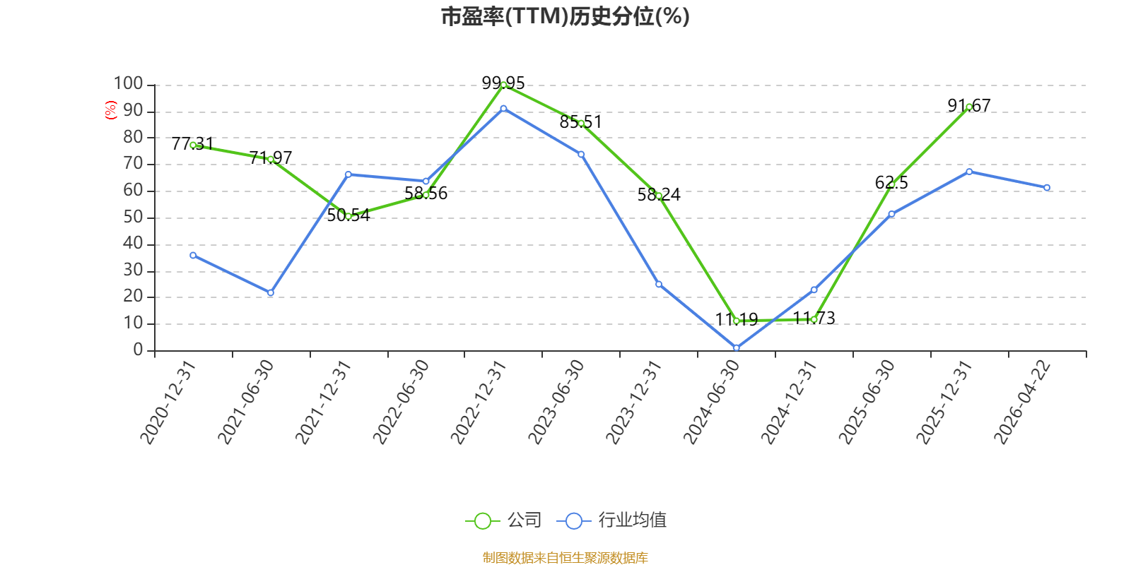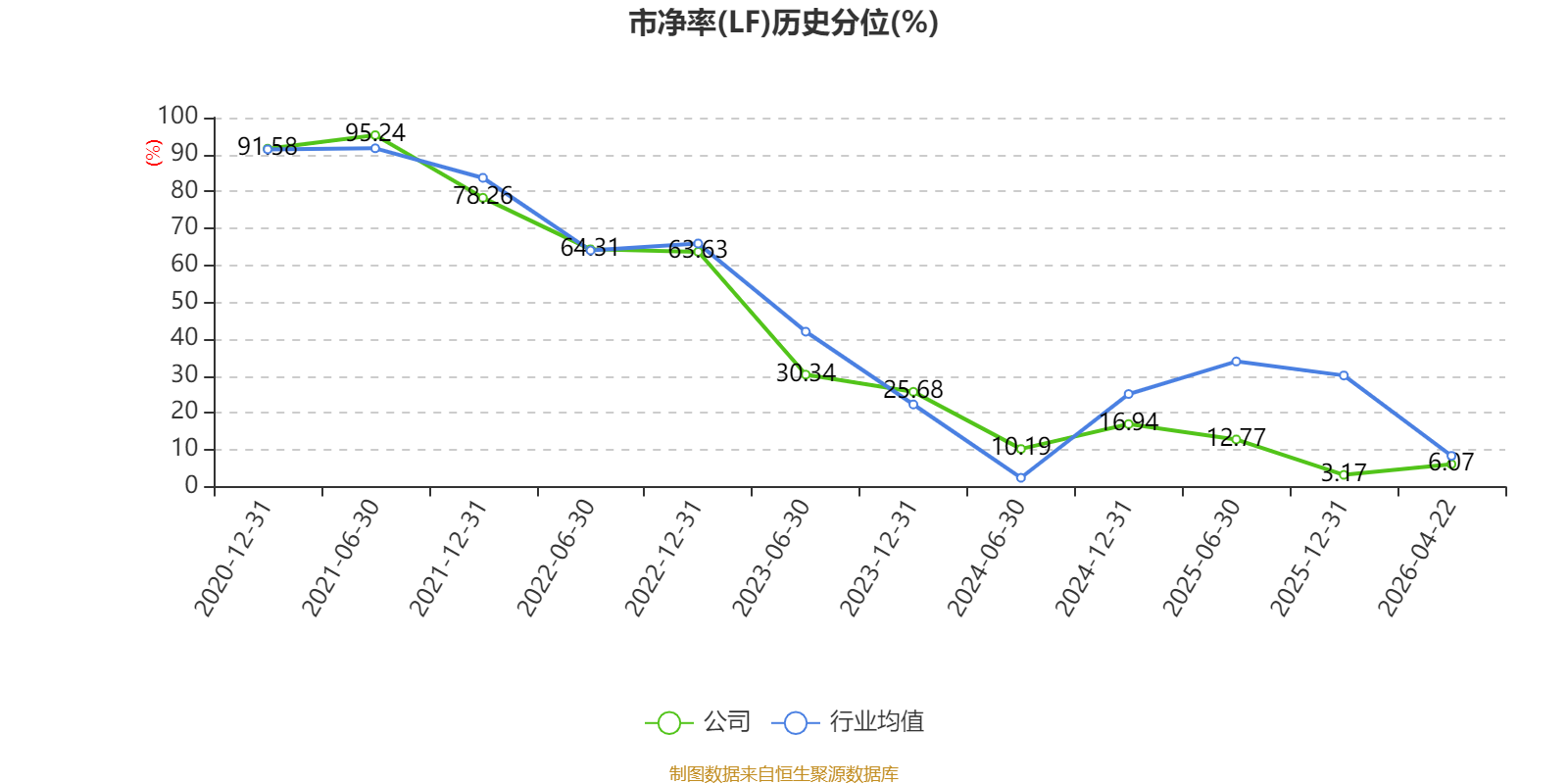 市盈率、市净率为负时,不显示当期分位数,会导致折线图中断。