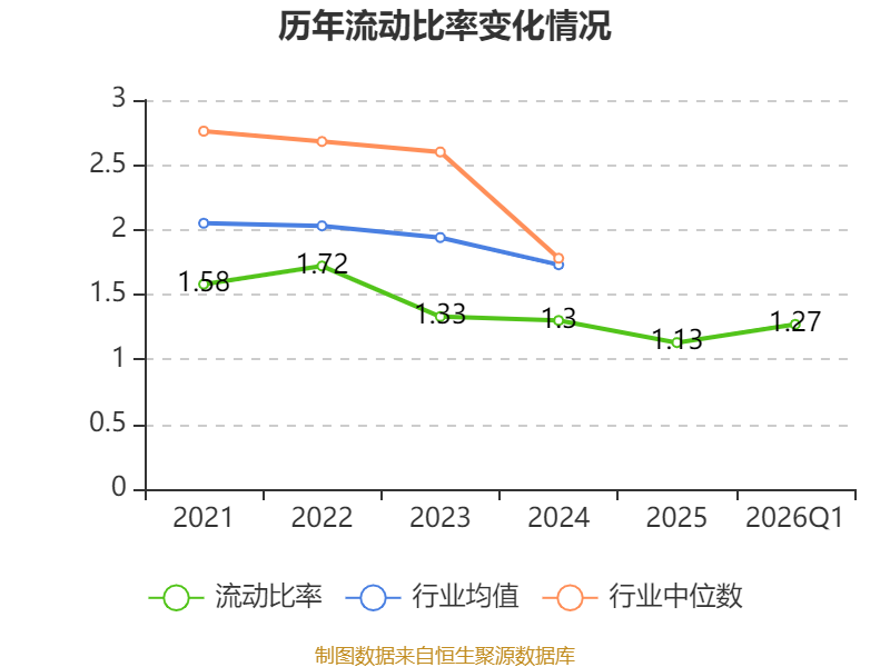 2026年第一季度,公司流动比率为1.27,速动比率为0.92。