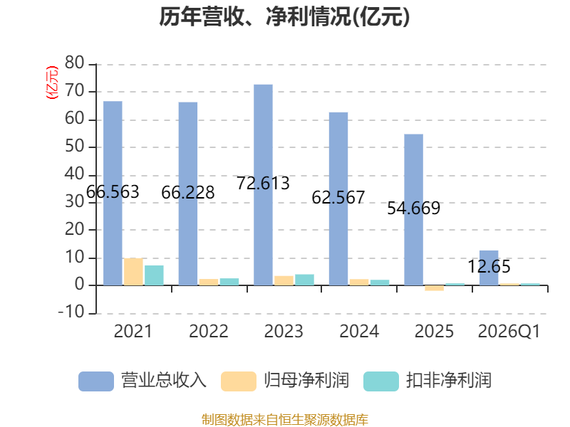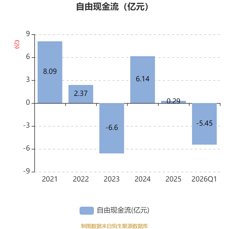 截至2026年一季度末,公司经营活动现金流净额为-1.37亿元,同比减少4.8亿元;筹资活动现金流净额2.78亿元,同比增加2.51亿元;投资活动现金流净额-8545.17万元,上年同期为-1.83亿元。