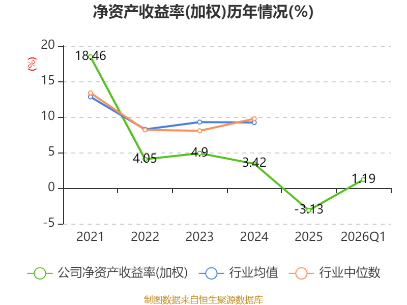 盈利能力方面, 2026年一季度公司加权平均净资产收益率为1.19%,同比下降0.7个百分点。公司2026年第一季度投入资本回报率为1.02%,较上年同期下降0.61个百分点。