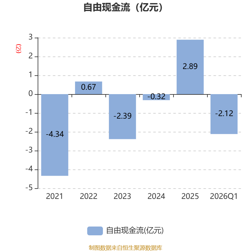 截至2026年一季度末,公司经营活动现金流净额为-5251.63万元,同比减少890.41万元;筹资活动现金流净额-80.06万元,同比减少184.85万元;投资活动现金流净额-1.34亿元,上年同期为3312.47万元。