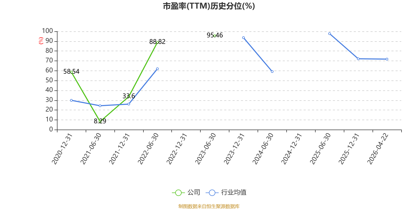市盈率、市净率为负时,不显示当期分位数,会导致折线图中断。
