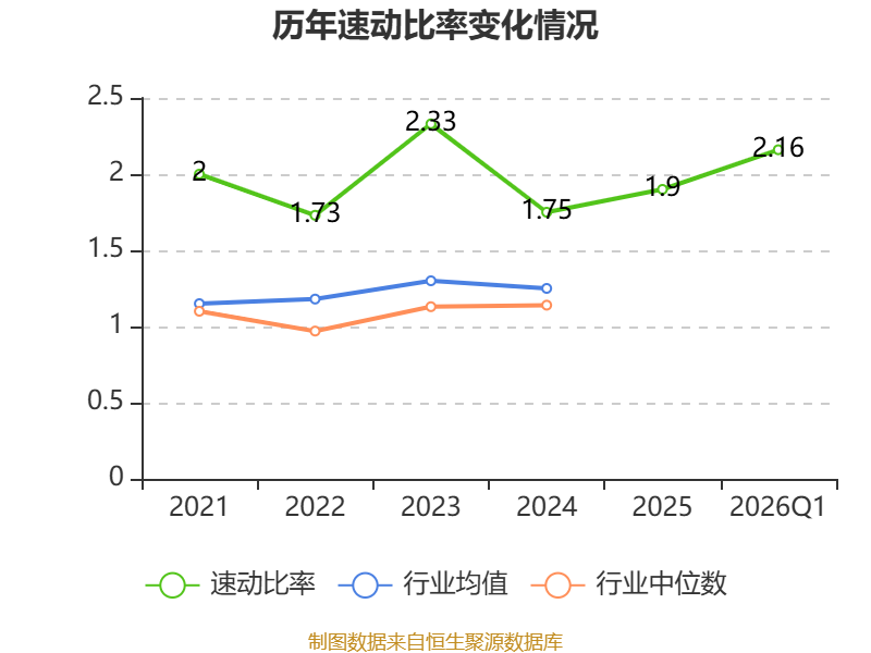 2026年第一季度,公司流动比率为2.63,速动比率为2.16。