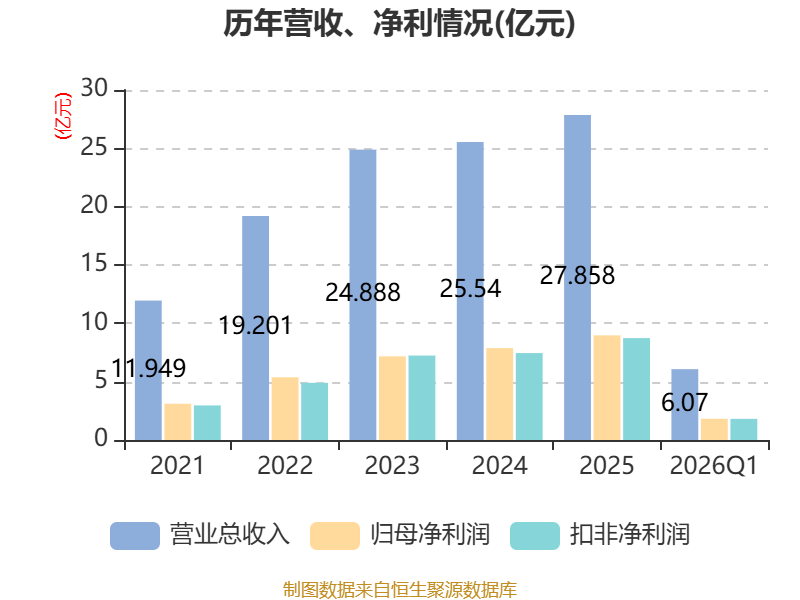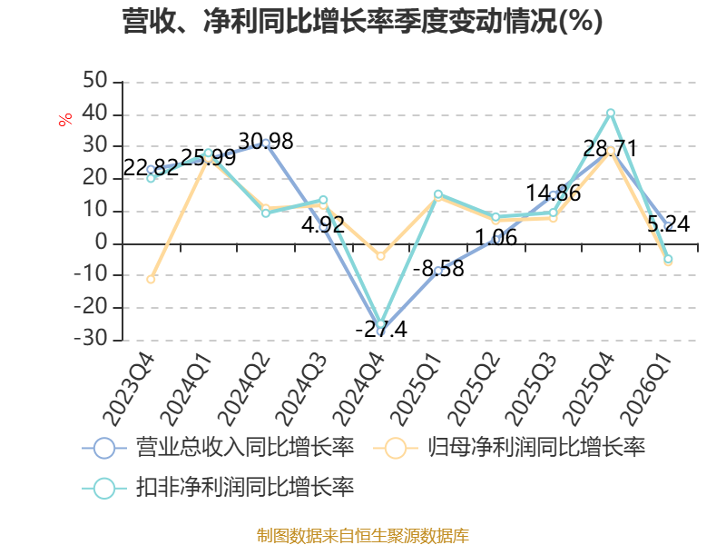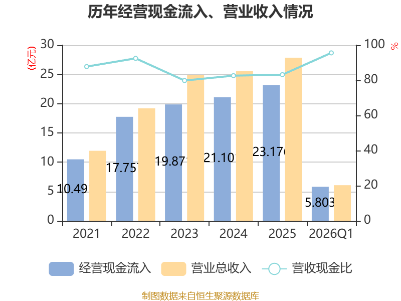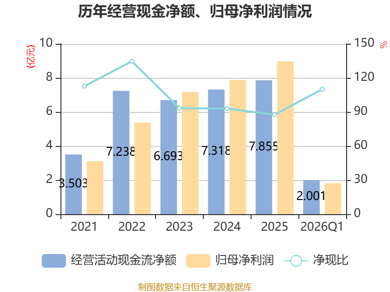 截至2026年一季度末,公司经营活动现金流净额为2亿元,同比增长36.59%;筹资活动现金流净额2552.35万元,同比增加2293.38万元;投资活动现金流净额-7791.82万元,上年同期为-1133.36万元。