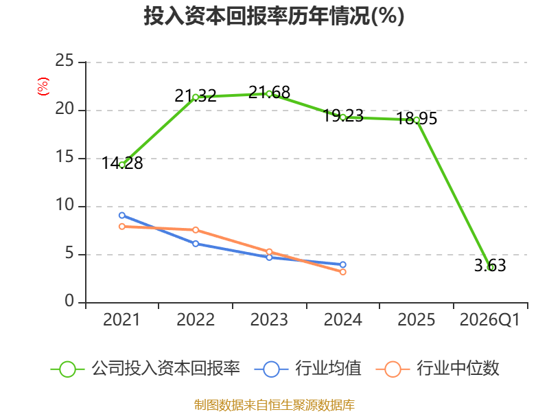 盈利能力方面, 2026年一季度公司加权平均净资产收益率为4.04%,同比下降0.77个百分点。公司2026年第一季度投入资本回报率为3.63%,较上年同期下降0.53个百分点。