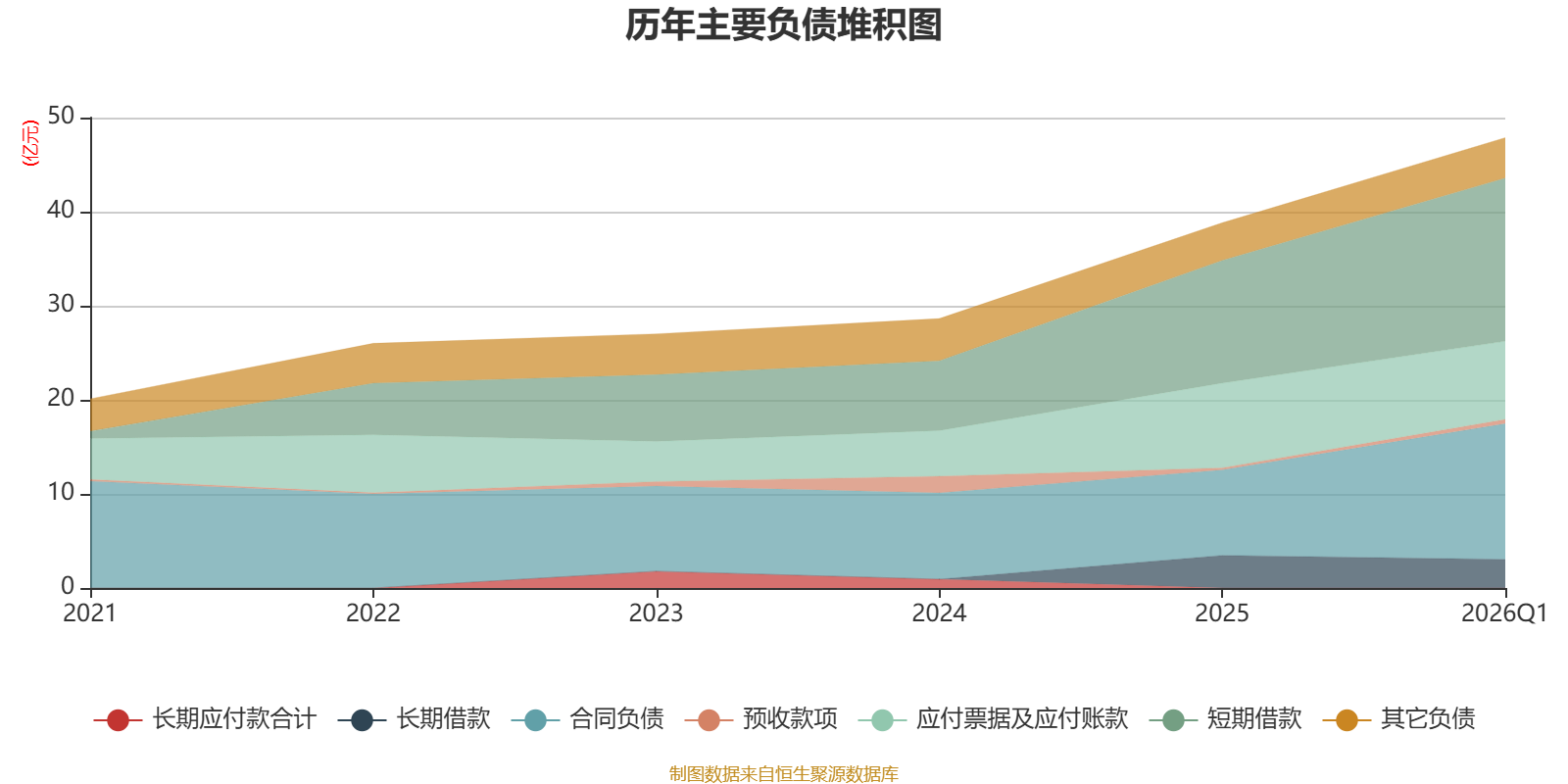 负债重大变化方面,截至2026年一季度末,公司合同负债较上年末增加58.59%,占公司总资产比重上升3.68个百分点;短期借款较上年末增加32.83%,占公司总资产比重上升2.56个百分点;应付票据及应付账款较上年末减少7.63%,占公司总资产比重下降1.19个百分点;长期借款较上年末减少12.08%,占公司总资产比重下降0.58个百分点。