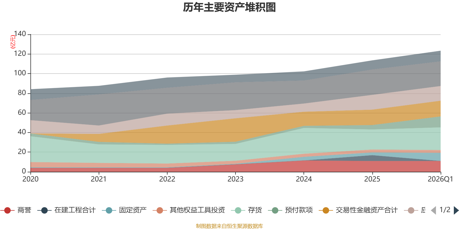 资产重大变化方面,截至2026年一季度末,公司在建工程合计较上年末减少100%,占公司总资产比重下降5.17个百分点;预付款项较上年末增加149.89%,占公司总资产比重上升5.1个百分点;固定资产较上年末增加190.38%,占公司总资产比重上升4.23个百分点;货币资金较上年末减少2.41%,占公司总资产比重下降2.32个百分点。