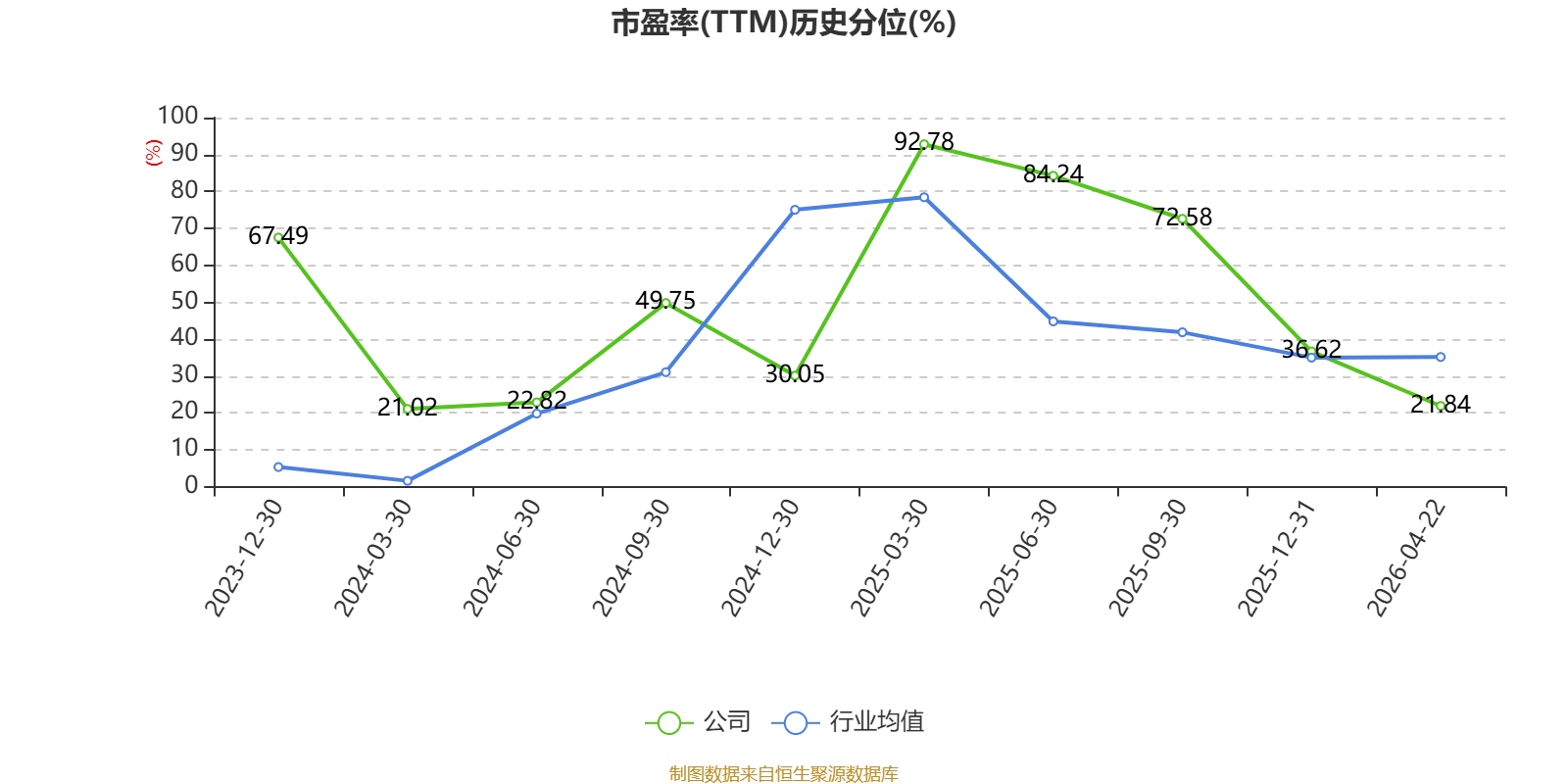 市盈率、市净率为负时,不显示当期分位数,会导致折线图中断。