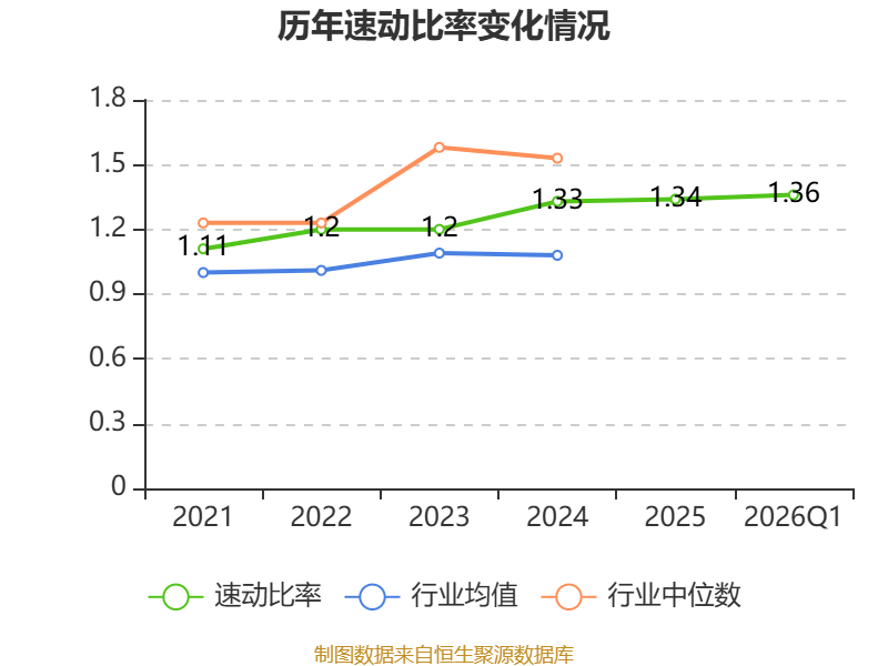 2026年第一季度,公司流动比率为1.4,速动比率为1.36。