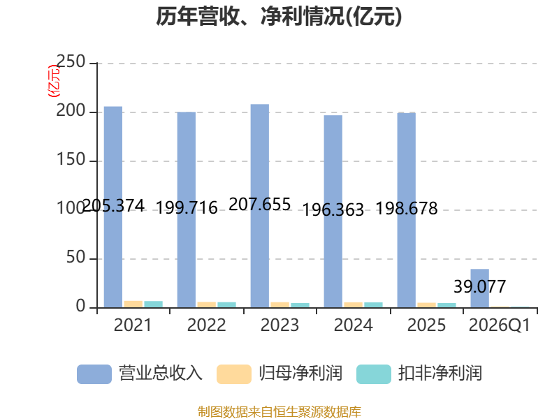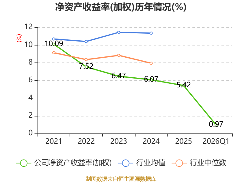 盈利能力方面, 2026年一季度公司加权平均净资产收益率为0.97%,同比下降0.19个百分点。公司2026年第一季度投入资本回报率为0.99%,较上年同期下降0.42个百分点。