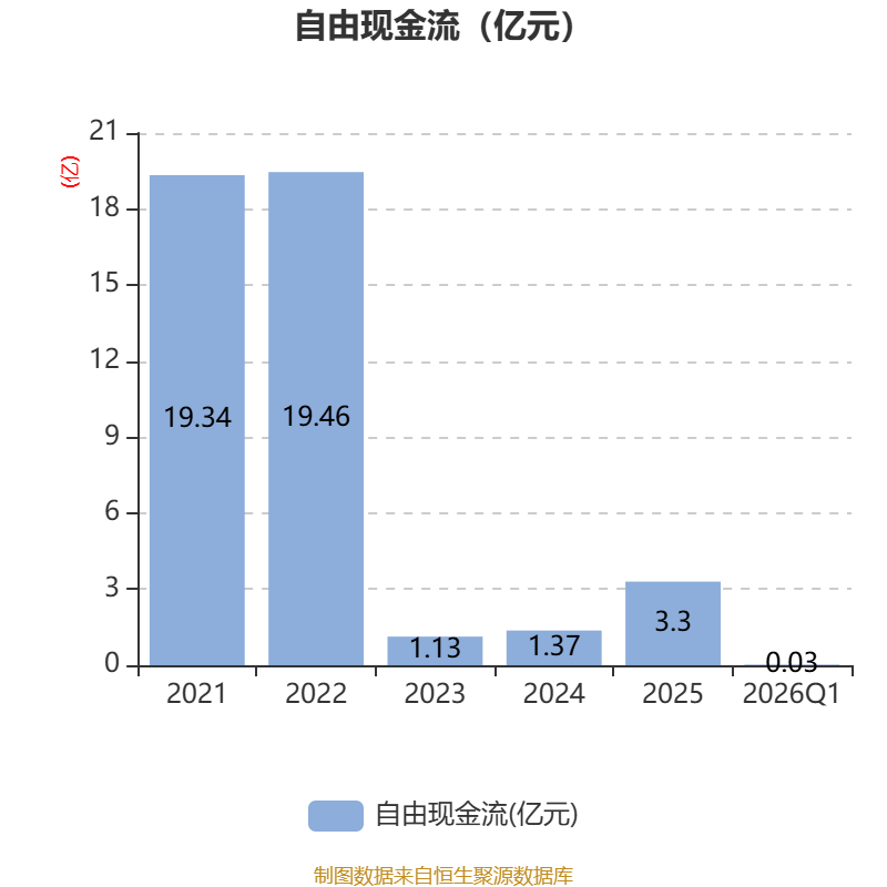 截至2026年一季度末,公司经营活动现金流净额为2.75亿元,同比下降34.39%;筹资活动现金流净额-10.06亿元,同比减少10.89亿元;投资活动现金流净额-4459.37万元,上年同期为-4.64亿元。
