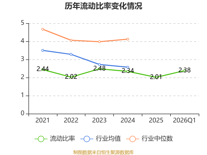 2026年第一季度,公司流动比率为2.38,速动比率为1.88。
