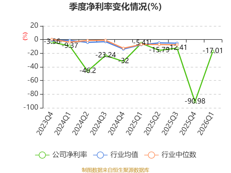 盈利能力方面, 2026年一季度公司加权平均净资产收益率为-2.78%,同比下降1.96个百分点。公司2026年第一季度投入资本回报率为-0.92%,较上年同期下降0.78个百分点。