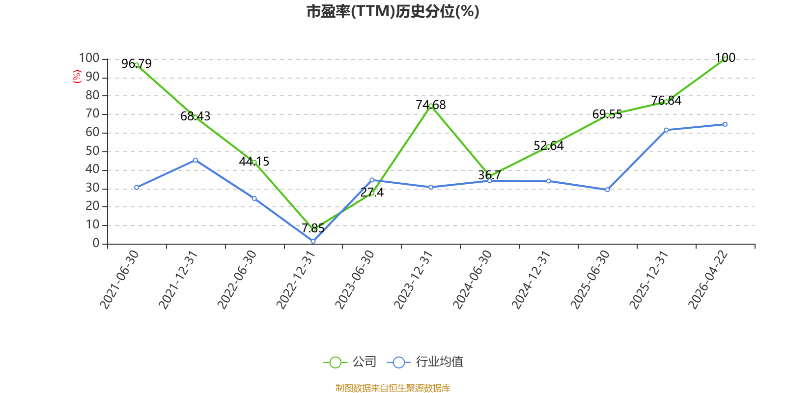 市盈率、市净率为负时,不显示当期分位数,会导致折线图中断。