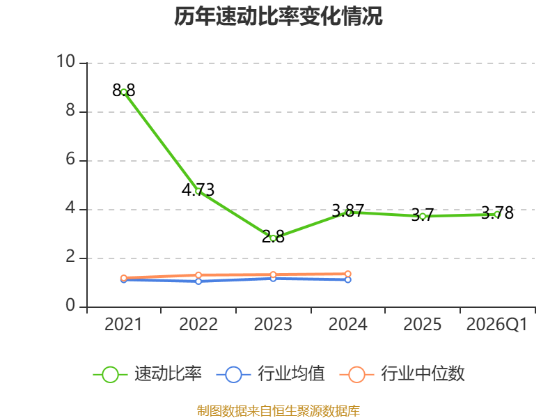 2026年第一季度,公司流动比率为4.07,速动比率为3.78。