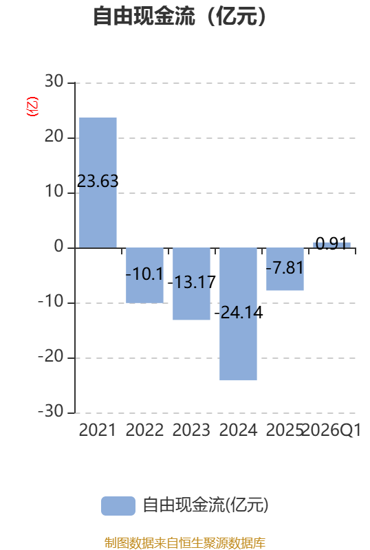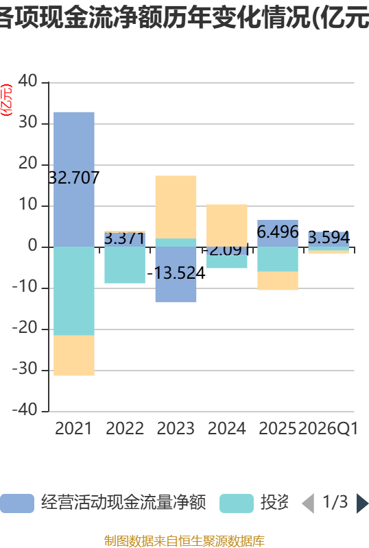 截至2026年一季度末,公司经营活动现金流净额为3.59亿元,同比增长177.43%;筹资活动现金流净额-7201.21万元,同比减少1583.9万元;投资活动现金流净额-9649.81万元,上年同期为-1.05亿元。