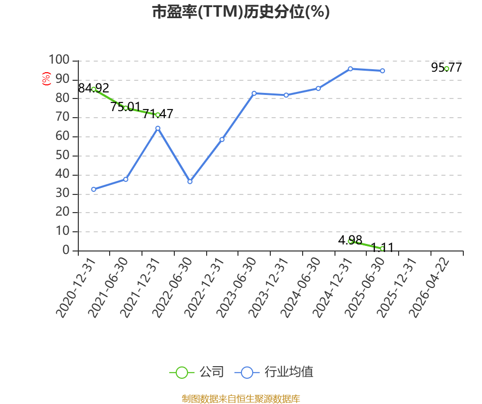 市盈率、市净率为负时,不显示当期分位数,会导致折线图中断。