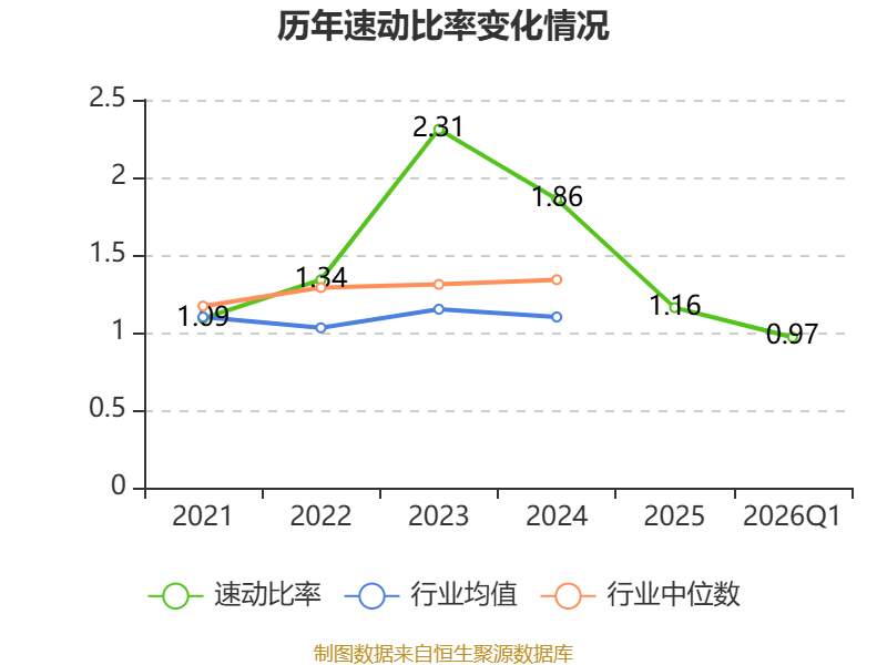 2026年第一季度,公司流动比率为1.74,速动比率为0.97。