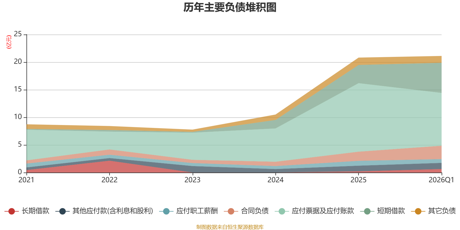 负债重大变化方面,截至2026年一季度末,公司应付票据及应付账款较上年末减少22.88%,占公司总资产比重下降6.91个百分点;短期借款较上年末增加65.67%,占公司总资产比重上升5.03个百分点;合同负债较上年末增加45.81%,占公司总资产比重上升1.76个百分点;长期借款较上年末增加205.38%,占公司总资产比重上升0.98个百分点。