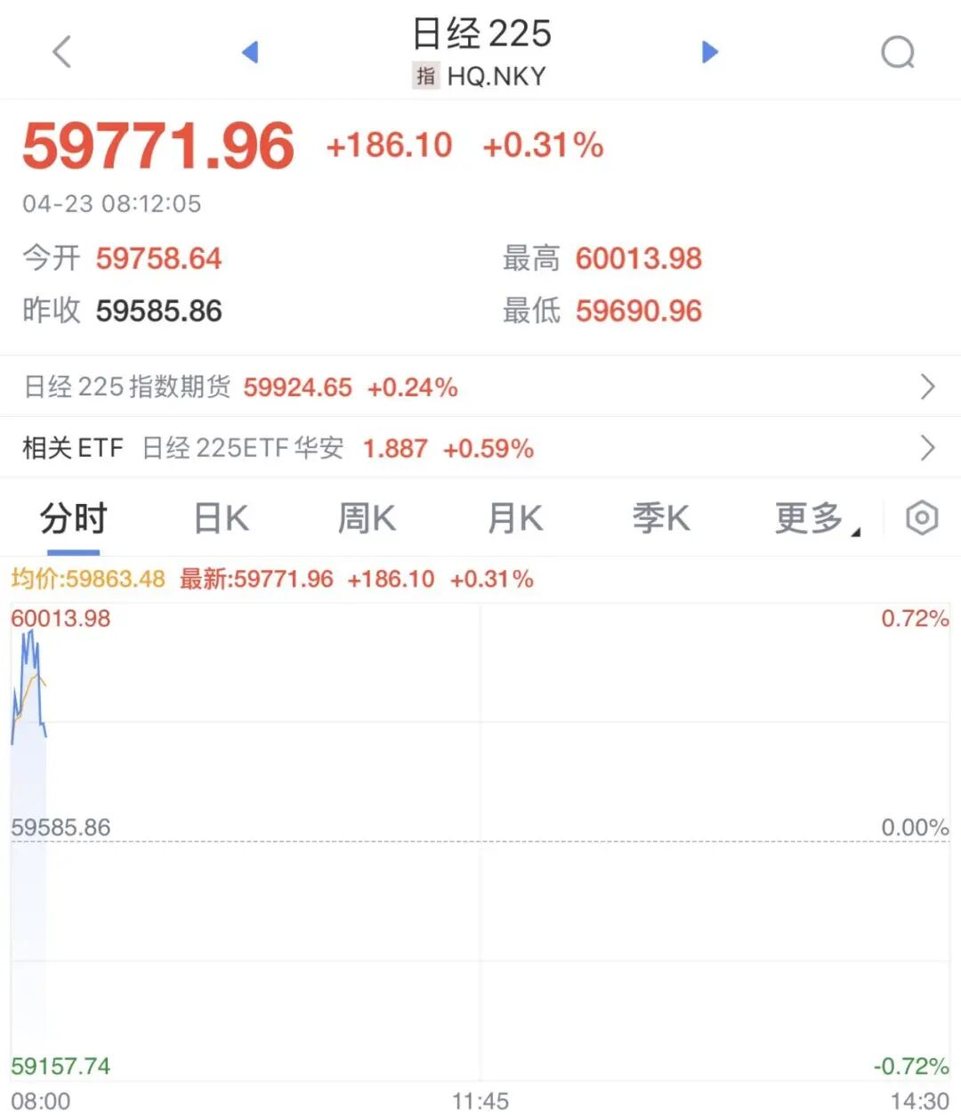 4月23日,日韩股市均创历史新高。韩国KOSPI指数涨超2%,创历史新高。