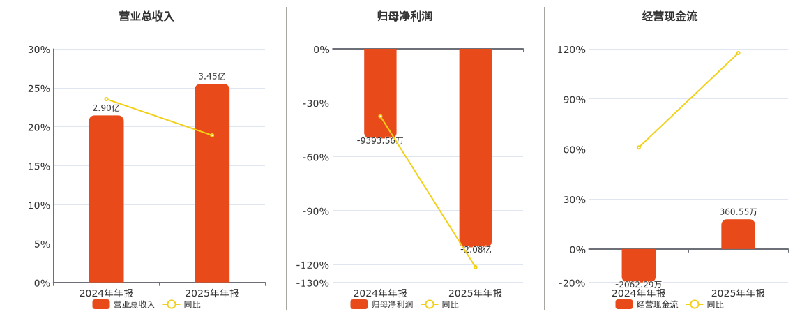 公司截至2025年12月31日,*ST立航营业总收入为3.45亿元,在已披露的同业公司中排名第26。截至2025年12月31日,*ST立航归母净利润为-2.08亿元,在已披露的同业公司中排名第26,较去年同报告期归母净利润减少1.14亿元。截至2025年12月31日,*ST立航经营活动现金净流入为360.55万元,在已披露的同业公司中排名第16。